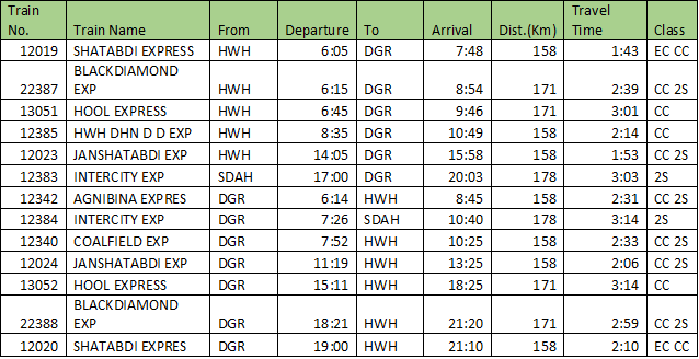 You can take the following trains from Howrah and reach Durgapur station. Although Panagarh is the nearest railhead, we do not recommend Panagraph as most of the Express Trains does not halt. You have to hire a private taxi to reach Deul from Durgapur Station.