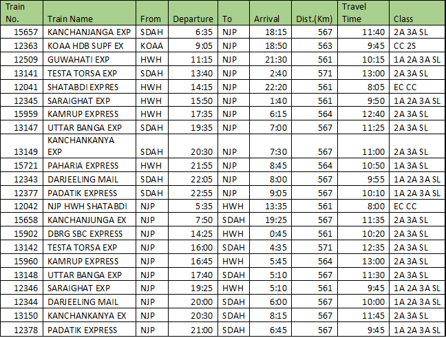 You can take the following trains from Howrah and reach New Jalpaiguri station. Reach Siliguri bus stand from New Jalpaiguri station by Rickshaw, Three wheeler or Taxi. You have to take State transport bus of Bengal /Bhutan or private buses or hire trekker or private taxi to reach Kalimpong. Hire trekker or taxi to reach Icchey Gaon.