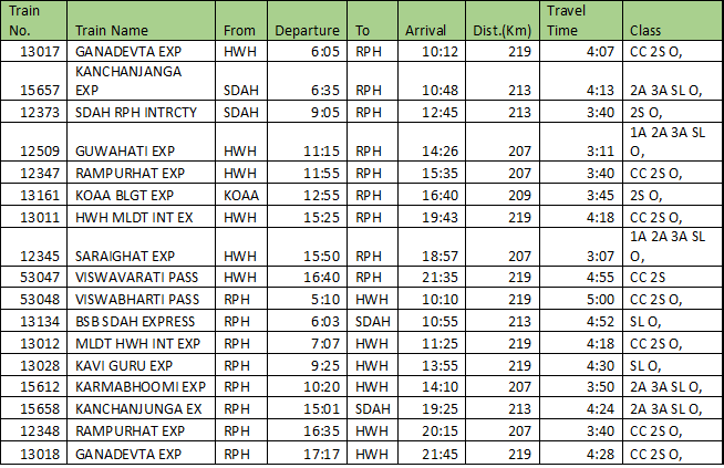 You can take the following trains from Howrah and reach Rampurhat station. You have to hire a private taxi to reach Tarapith from Rampurhat.